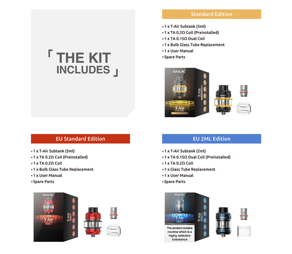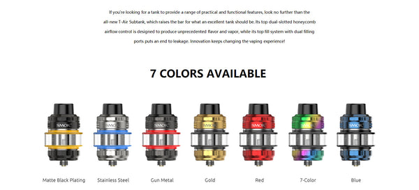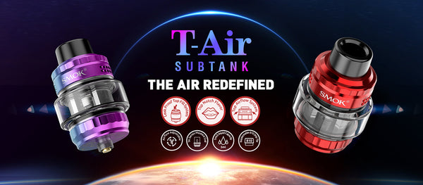 إذا كنت تبحث عن خزان يوفر مجموعة من الميزات العملية والوظيفية، فخزان T-Air الفرعي الجديد كليًا هو وجهتك المثالية، فهو يرتقي بمعايير الخزانات الممتازة. صُمم نظام التحكم في تدفق الهواء ثنائي الفتحات على شكل قرص العسل في الجزء العلوي منه لإنتاج نكهة وبخار غير مسبوقين، بينما يمنع نظام التعبئة العلوي المزود بمنافذ تعبئة مزدوجة التسرب. الابتكار يُغير تجربة التبخير باستمرار!