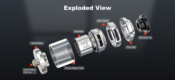 Hellvape Dead Rabbit Solo RTA features a diameter of 24mm. Finished with a postless deck for Single coil configuration. incorporating a 2ml vape juice capacity, you can also choose a bubble glass with its 4ml. It matches a flawless flavor and massive vapor when it comes to its top-to-bottom airflow, the top airflow is provided by two side slots and directly guides air down through its honeycomb. Opening the top cap, it supports the top filling system to resupply the e-juice.