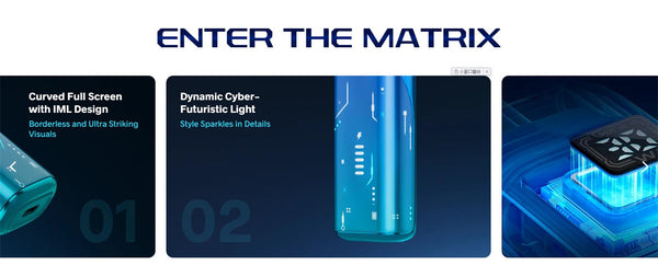 Step into the future with the Voopoo ARGUS Matrix Pod System Kit, a stylish and compact pod system featuring a 1350mAh battery, up to 30W output, and a vibrant Curved Full Screen with Dynamic Cyber Visuals. Built with VOOPOO's iCOSM CODE 2.0 flavor technology, the ARGUS Matrix delivers exceptional taste consistency, leak-resistant design, and an extended 100ml endurance vaping experience. Compatible with the ARGUS Top Fill Cartridge V2, it comes preloaded with both 0.4ohm and 0.7ohm mesh coils, ideal for RDL and MTL styles. Ergonomic, visually stunning, and performance-driven, it's the pod system that does it all.