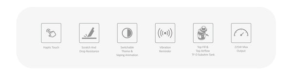 The SMOK X-PRIV Plus Box Mod is power by two external 18650 batteries (not included)and has a wider range of output power from 5W to 225W.Any subtle change in the output, voltage, and puff count is displayed on the gigantic 2.01-inch big screen. You can also touch the screen to change the settings as well as choose different themes for vaping.