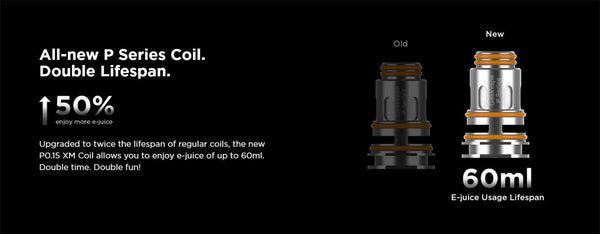 Upgraded to twice the lifespan of regular coils, the new P0.15 XM Coil allows you to enjoy e-juice of up to 60ml.