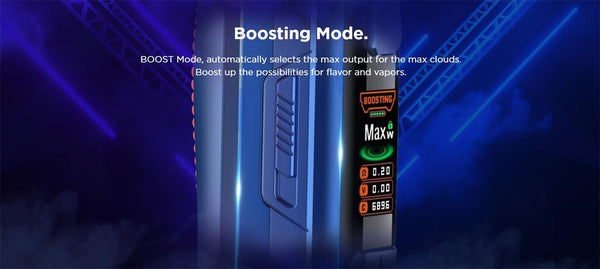 BOOST Mode, automatically selects the max output for the max clouds. Boost up the possibilities for flavor and vapors.