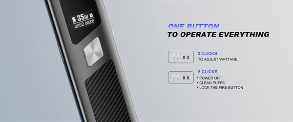6. Multi-function button: Power on/off, adjustable wattage, lock/unlock, puff clear.
