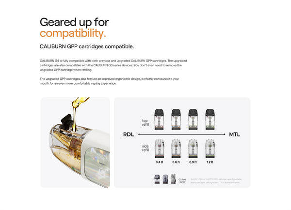 6. Compatible with Uwell Caliburn G3 and GPP Pod Cartridges