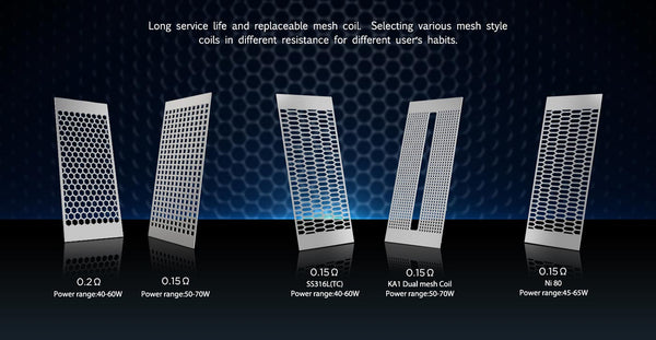 0.15ohm Ni80 Mesh: Power Range: 45-65W