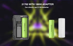 Battery: 21700 battery, or 18650 battery with (18650 adapter), battery is not included